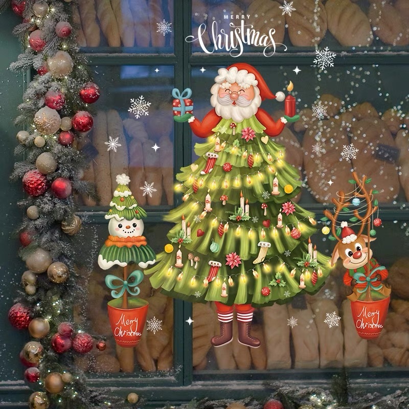 - ウォールステッカー YSD061 メリークリスマス サンタクロース 雪だるま ルドルフ 雪花 DIY壁紙インテリア窓シート剥がせる 送料無料