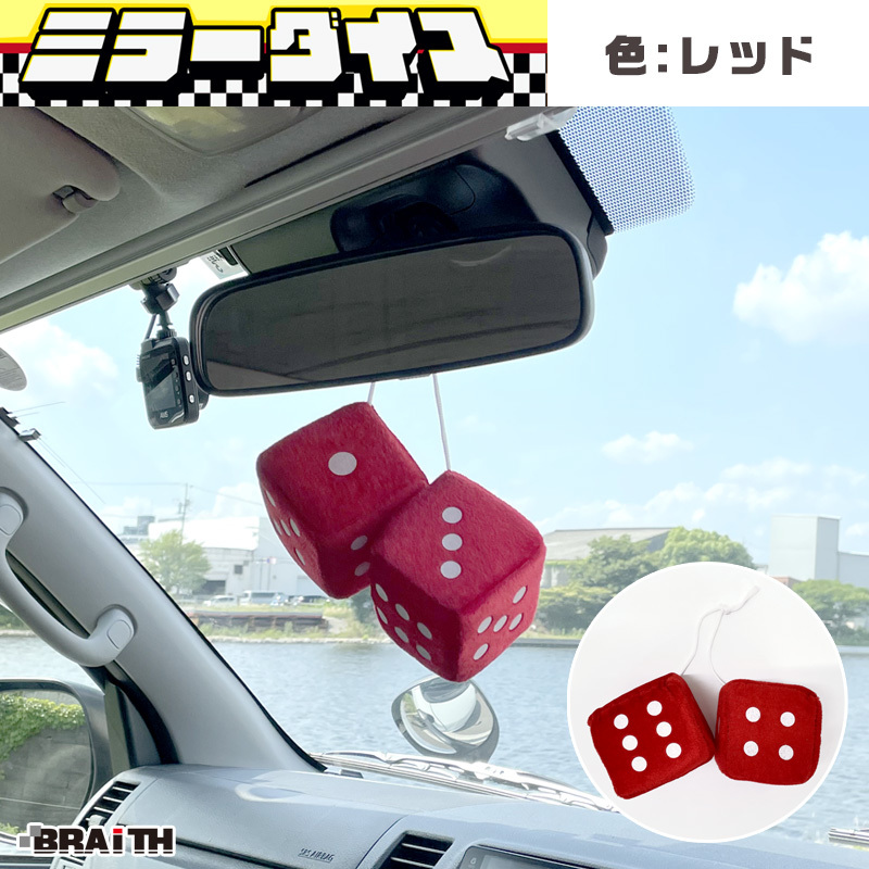 - ミラーダイス サイコロ型 ミラー取付 車内アクセサリー レッド 赤 カーアクセサリー BRAiTH/ブレイス BM-628