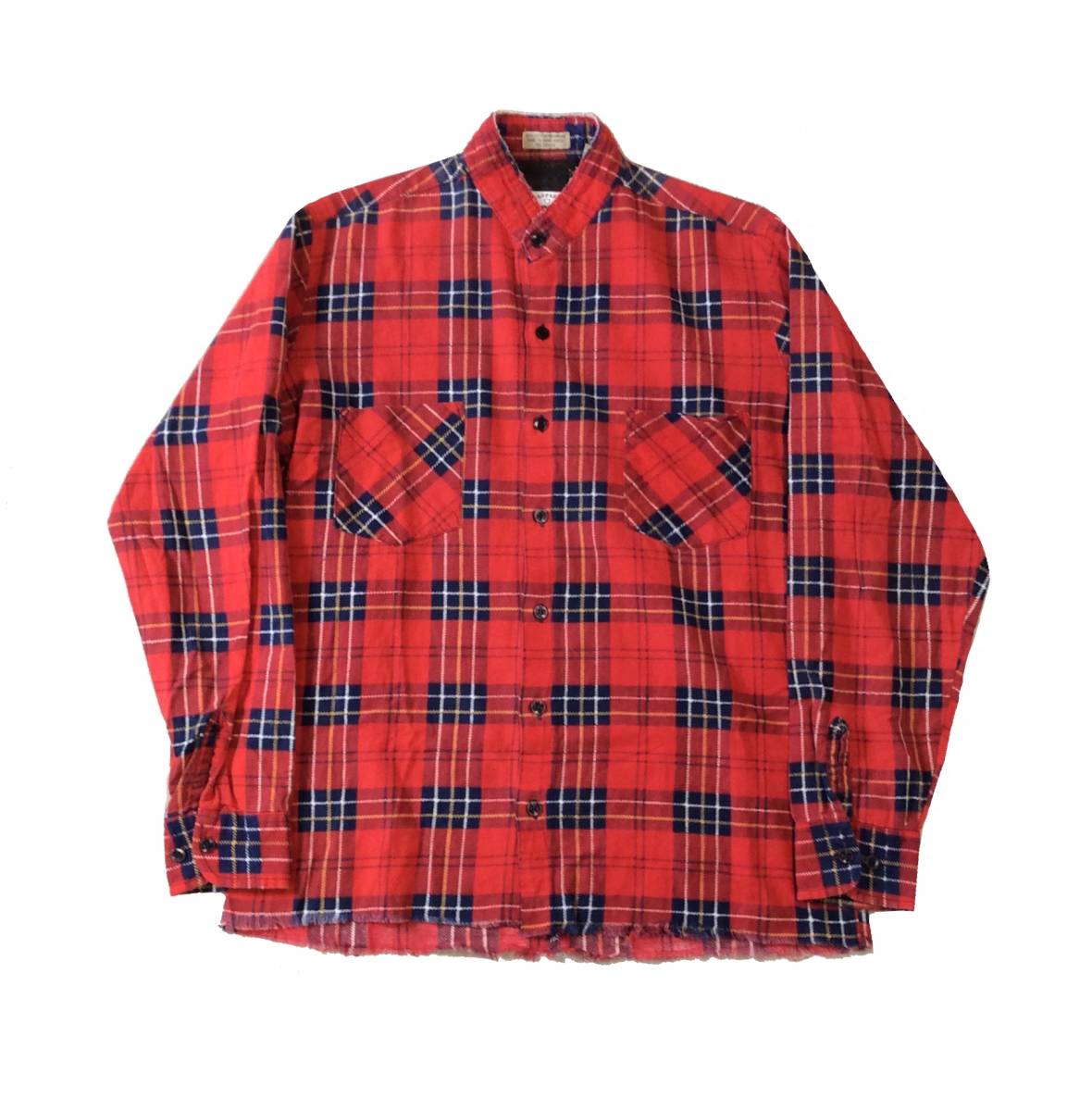 - OLD PARK オールドパーク リメイク チェック プリントネル ネルシャツ バンドカラー 赤 フリーサイズ