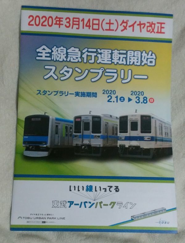 - ◎★東武鉄道★アーバンパークライン(野田線) 2020年3月ダイヤ改正 全線急行運転開始スタンプラリー 台紙・パンフレット