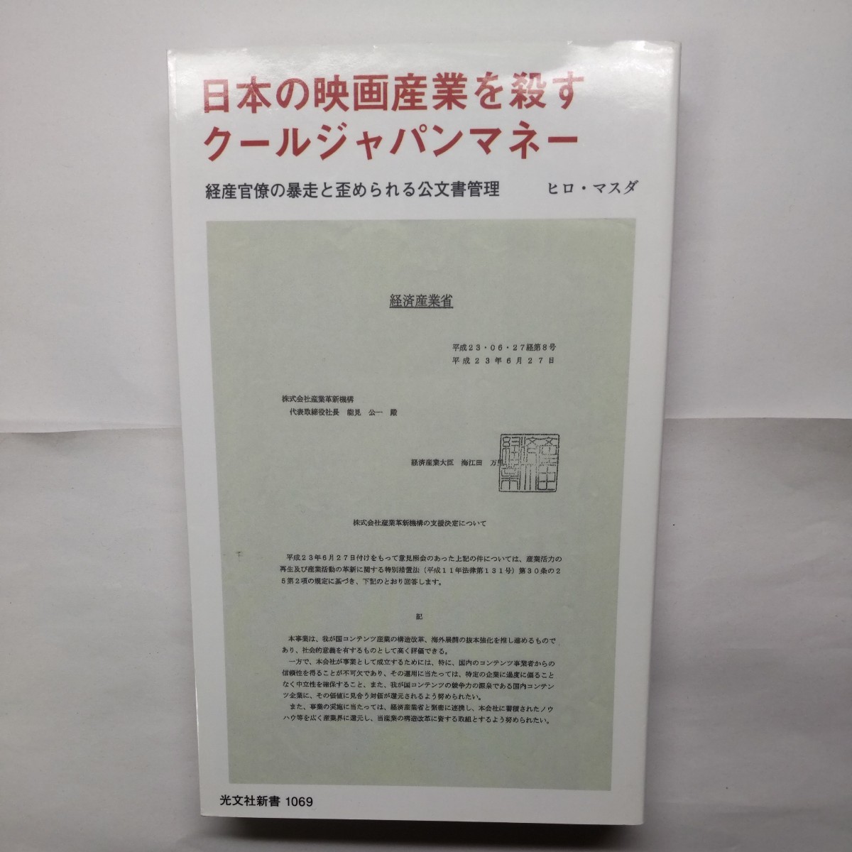 - 日本の映画産業を殺すクールジャパンマネー 経産官僚の暴走と歪められる公文書管理 (光文社新書 1069) ヒロ・マスダ/著