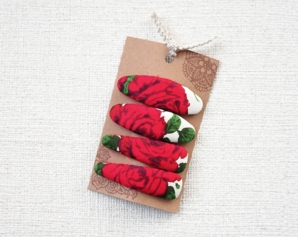 - ★ ハンドメイド リバティプリント使用 薔薇柄5㎝パッチンピン カーライン レッド ★