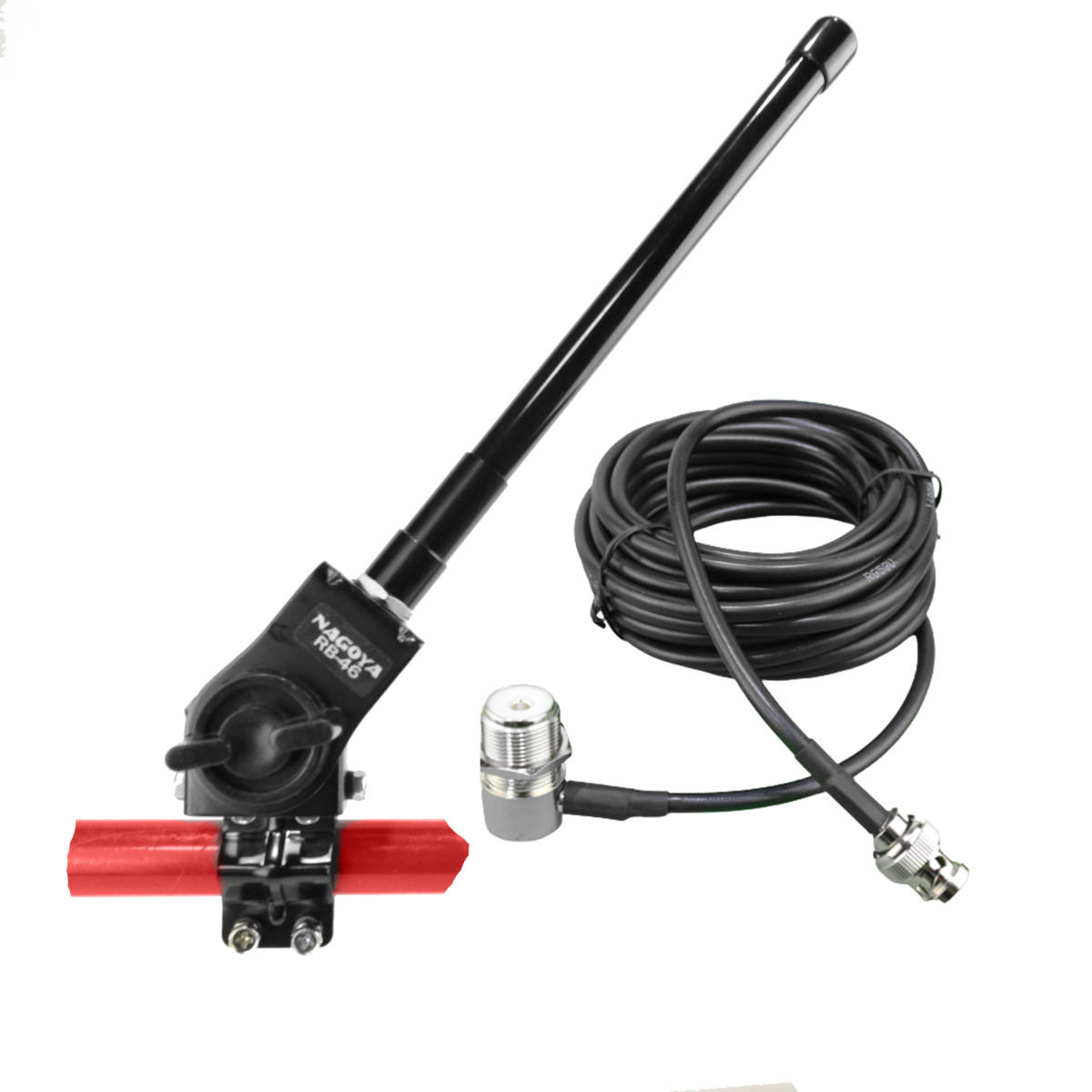 - 【送料無料】144/430MHz帯 ルーフアンテナ基台(ブラック)RB46+RG58(3D-2V相当)同軸ケーブル5m MJL-BNC-P+22㎝ ノンラジアルアンテナ(黒)