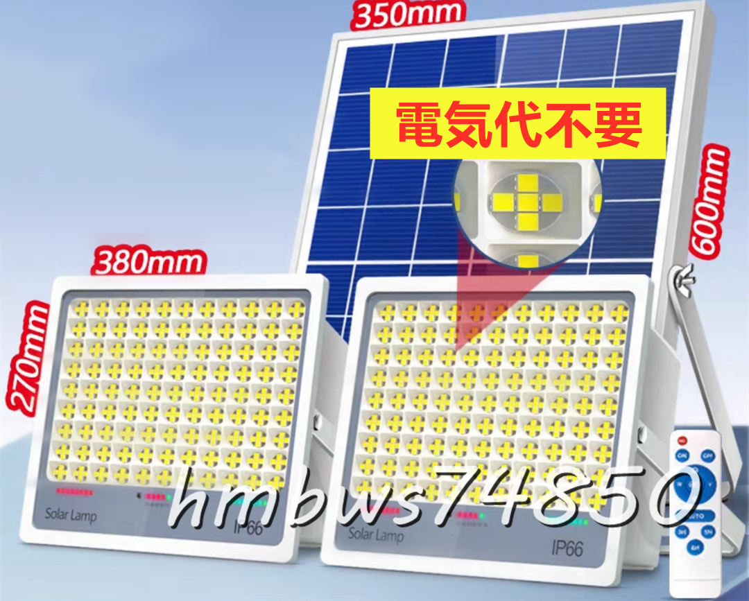 > 稀少品 ソーラーライト LED投光器×2 ガーデンライト 街灯 屋外用ライト高輝度 バッテリー残量表示 防犯ライト庭用 駐車場 照明 9800W