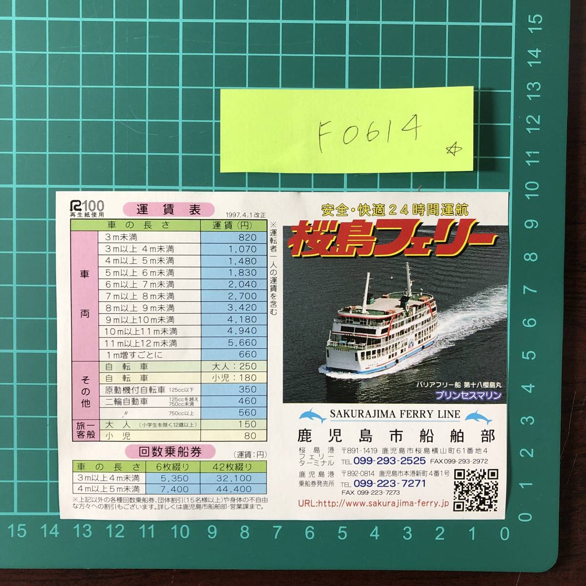- 桜島フェリー 鹿児島市船舶部 運賃表・時刻表 鹿児島港~桜島港 1997年頃 【F0614】