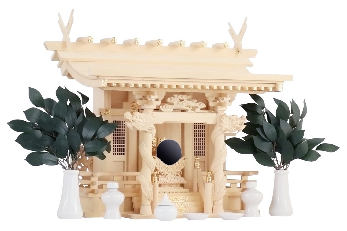 - 神棚セット 風神雷神龍神 宿る神々 瀬戸焼神具セット 雄大 一社 檜葉製
