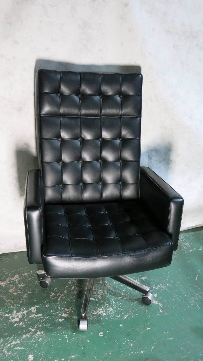 > 中古 Knoll ノール エグゼクティブチェア chair 黒 革 傷等有り パーツ欠品 オフィスチェア ヴィンセント キャフィエロ 役員チェア