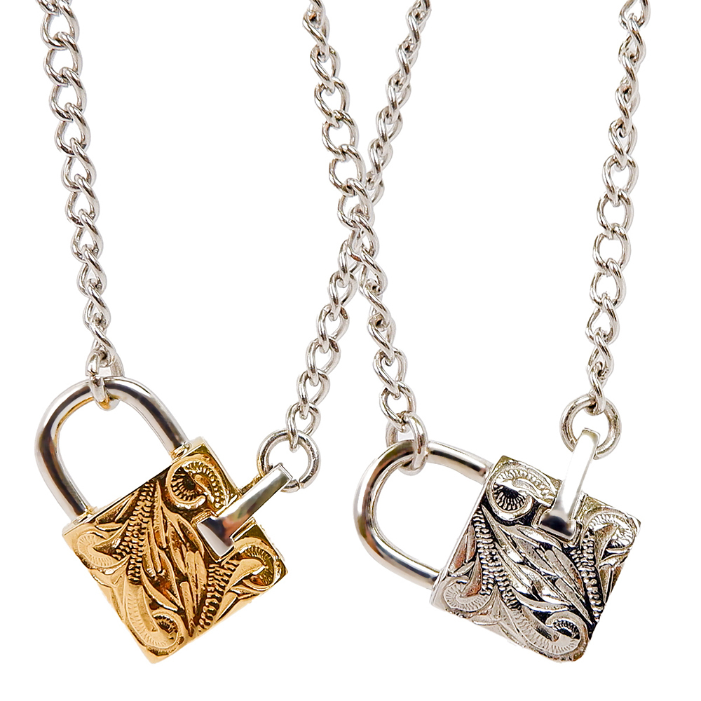 > ★インスタ映え★SNS★人気★ハワイアンジュエリー★金属アレルギー&温泉&海水浴OK★ステンレスネックレス★南京錠・パドロックGD&SV★
