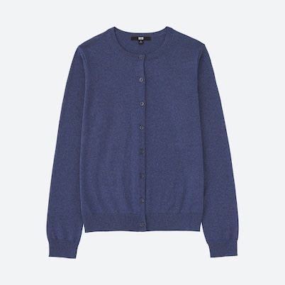 > ユニクロwomen スーピマコットン クルーネック カーディガン サイズL ネイビー