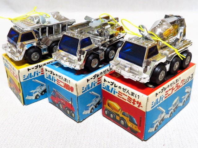 - トープレのぜんまいシルバーミニトラックシリーズ3点 ミニダンプ ミニ消防車 ミニミキサー レトロ アンティーク デッドストック その2