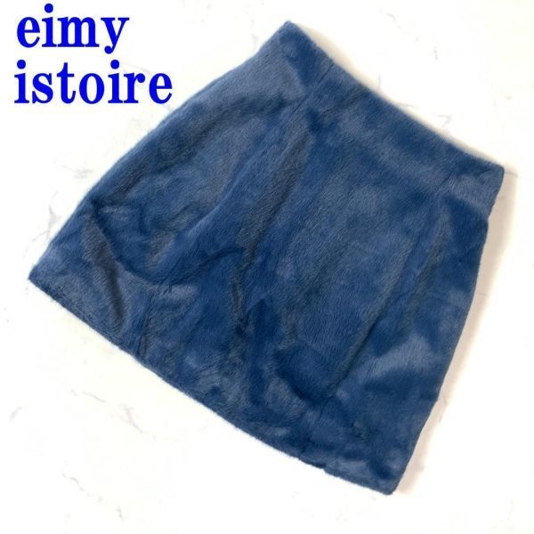- エイミーイストワール シャギーニットひざ上スカートブルー系eimy istoire カジュアル ポケット無 ミニスカート バック同デザイン S C7618