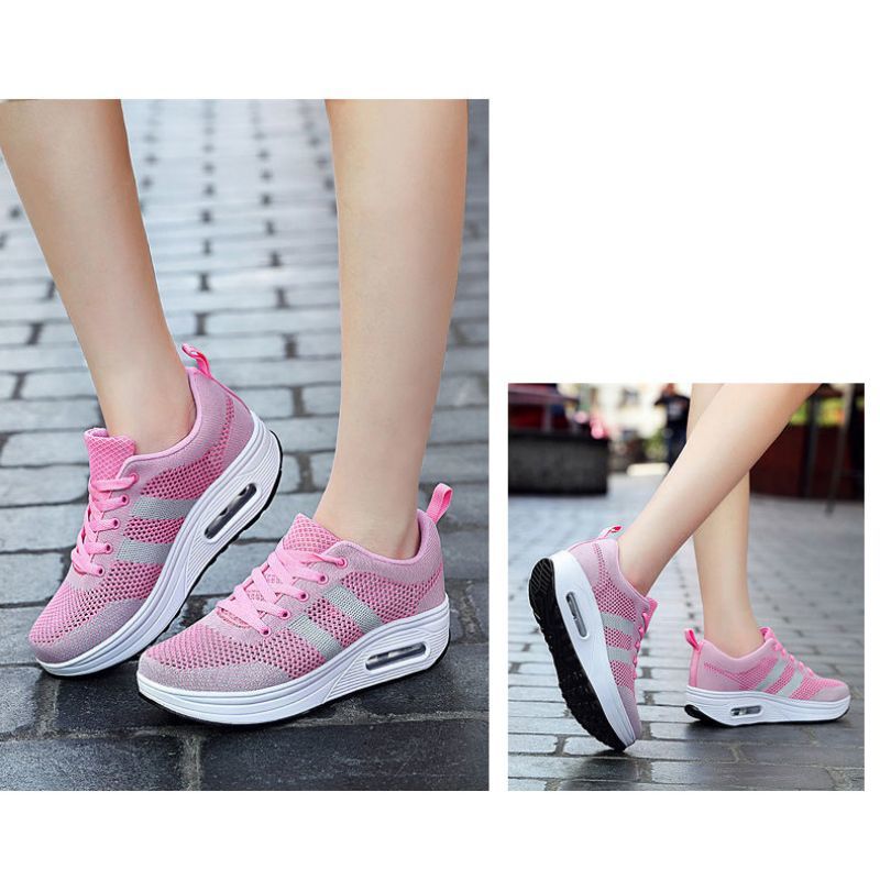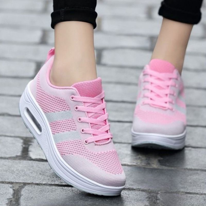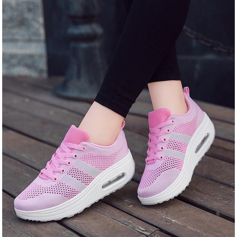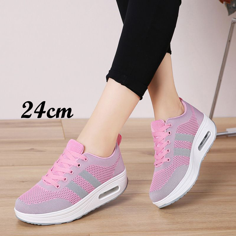 > ☆スニーカー レディース レディースシューズ 紐靴 レディーススニーカー メッシュ エアースニーカー 厚底 歩きやすい 通勤 ピンク 24cm