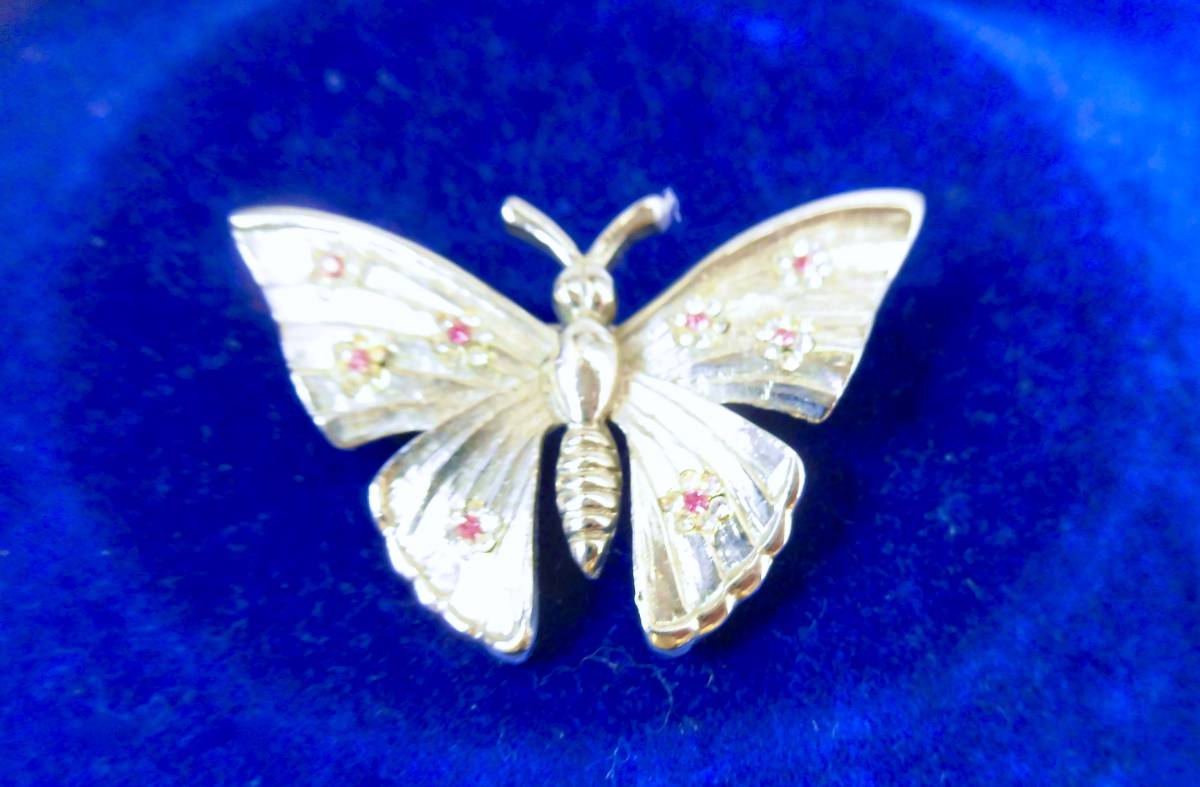 - ●美品*銀の蝶* ルビー飾り/華麗なブローチ/5cm大/開運 ご褒美 プレゼントにも!