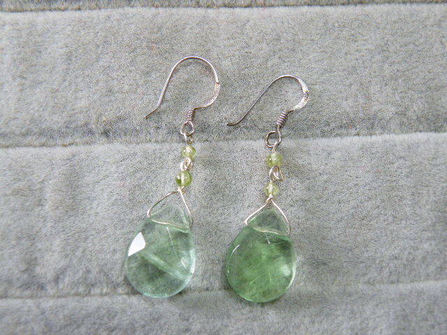 - 7061.グリーン カラーストン 水晶 シルバー925 ロングピアス 在庫処分