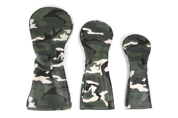 - 【未使用】 ヘッドカバー3個セット 迷彩グリーン ウッドカバーセット