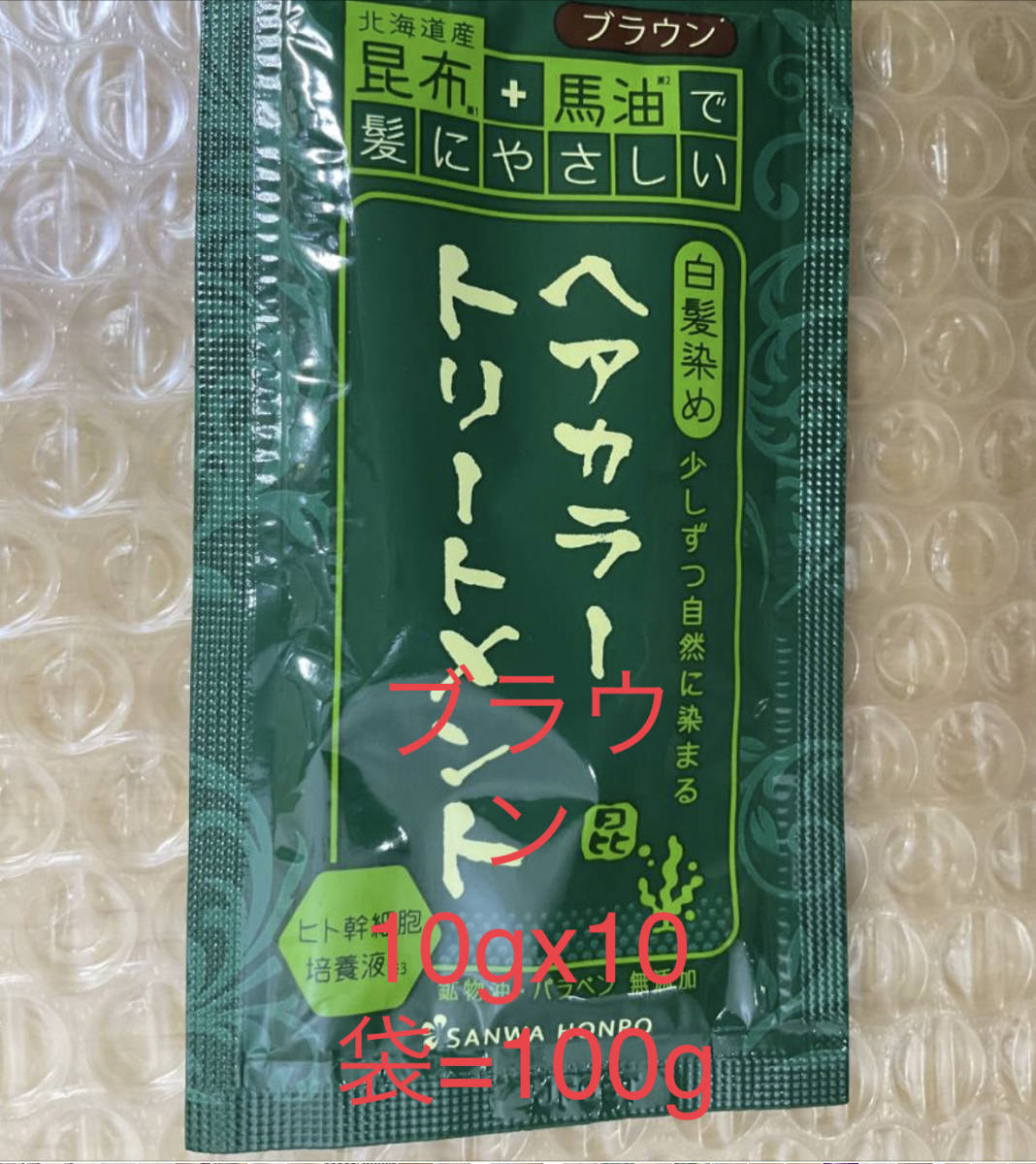 - 北海道産昆布+馬油で髪にやさしいヘアカラートリートメントブラウン10gx10袋=100g