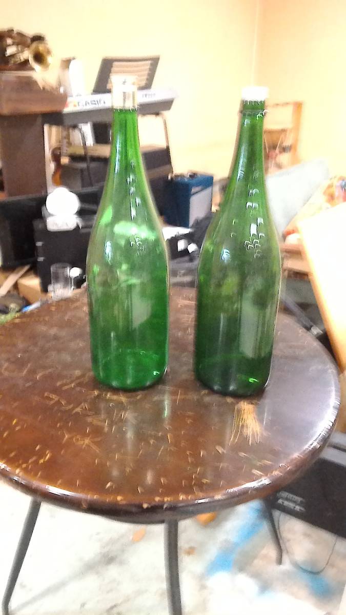 - 現状ー昔の古いグリーン色のビンー2本ーイツショ瓶