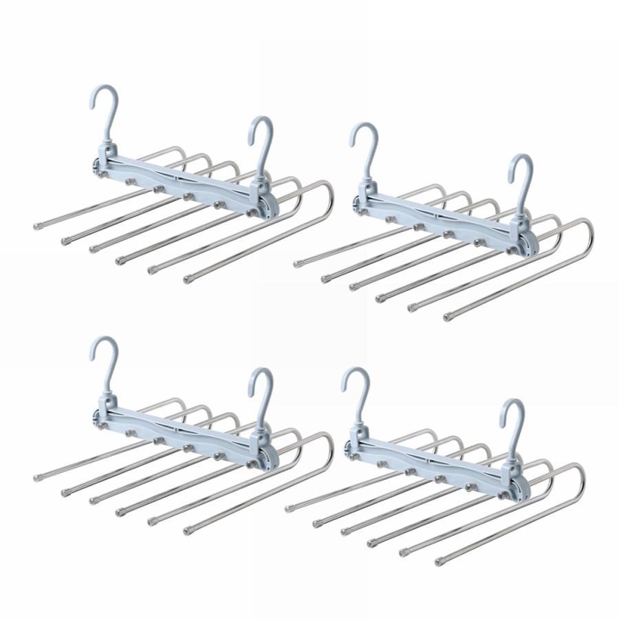- ズボンハンガー4点セット ブルー 収納ハンガー スラックス