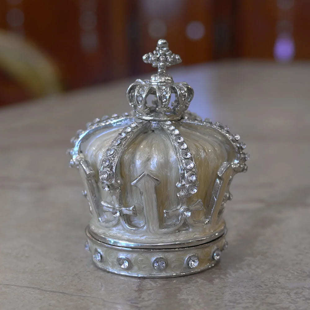 - 【大変飾り映えするピルケース 】王冠クラウン銀小物入ジュエリーボックスアンティークロココハンドメードエナメルフランスインテリア雑貨