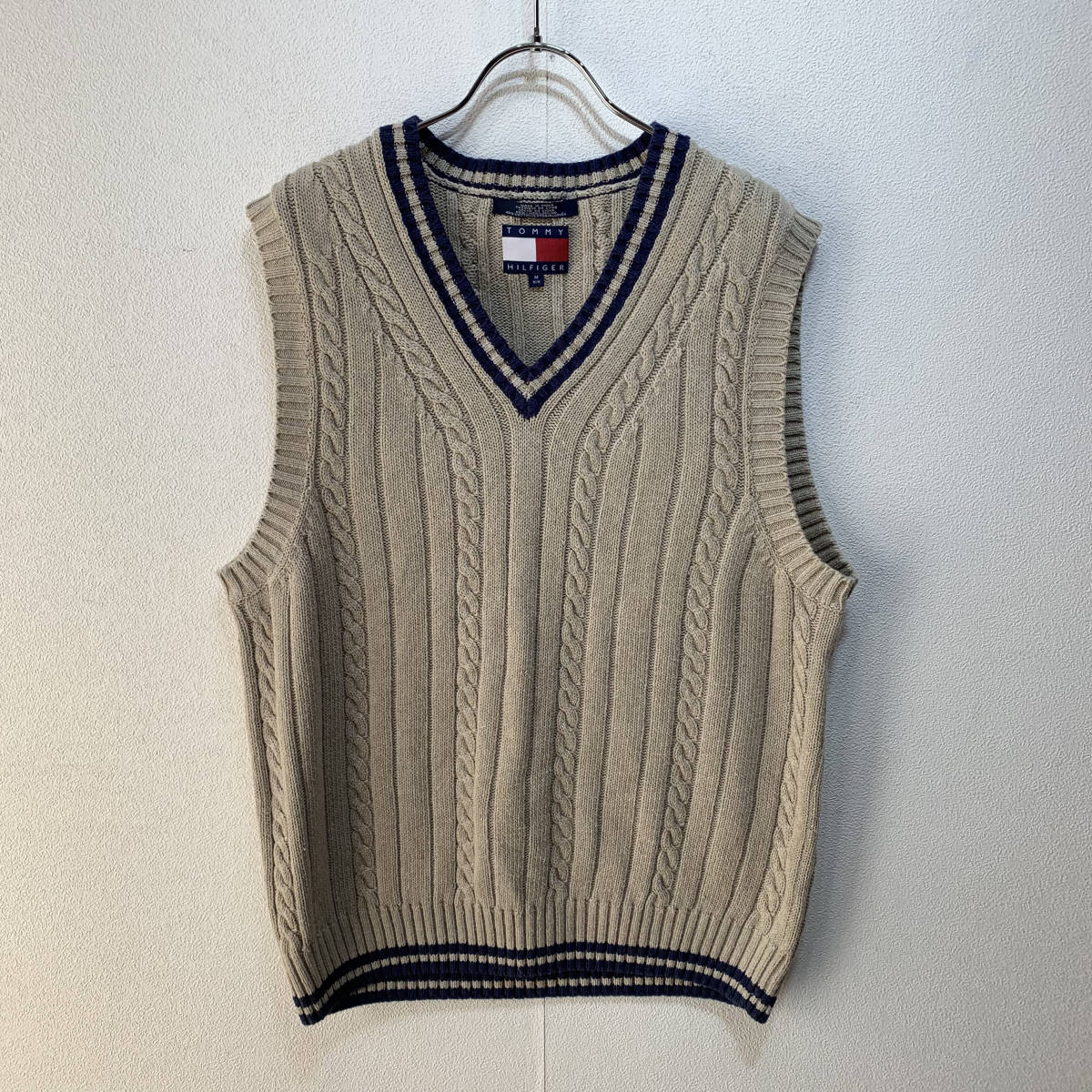 - TOMMY HILFIGER/トミーヒルフィガー ニット ベスト メンズM ベージュ 紺/ネイビー バイカラー K3124