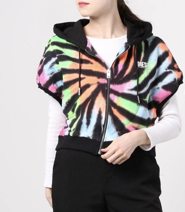 - 個性的 ☆ DIESEL ☆ サークル タイダイ パーカー ショート丈 / フード / フーディ / ジップアップ / フェス / ディーゼル /レディース