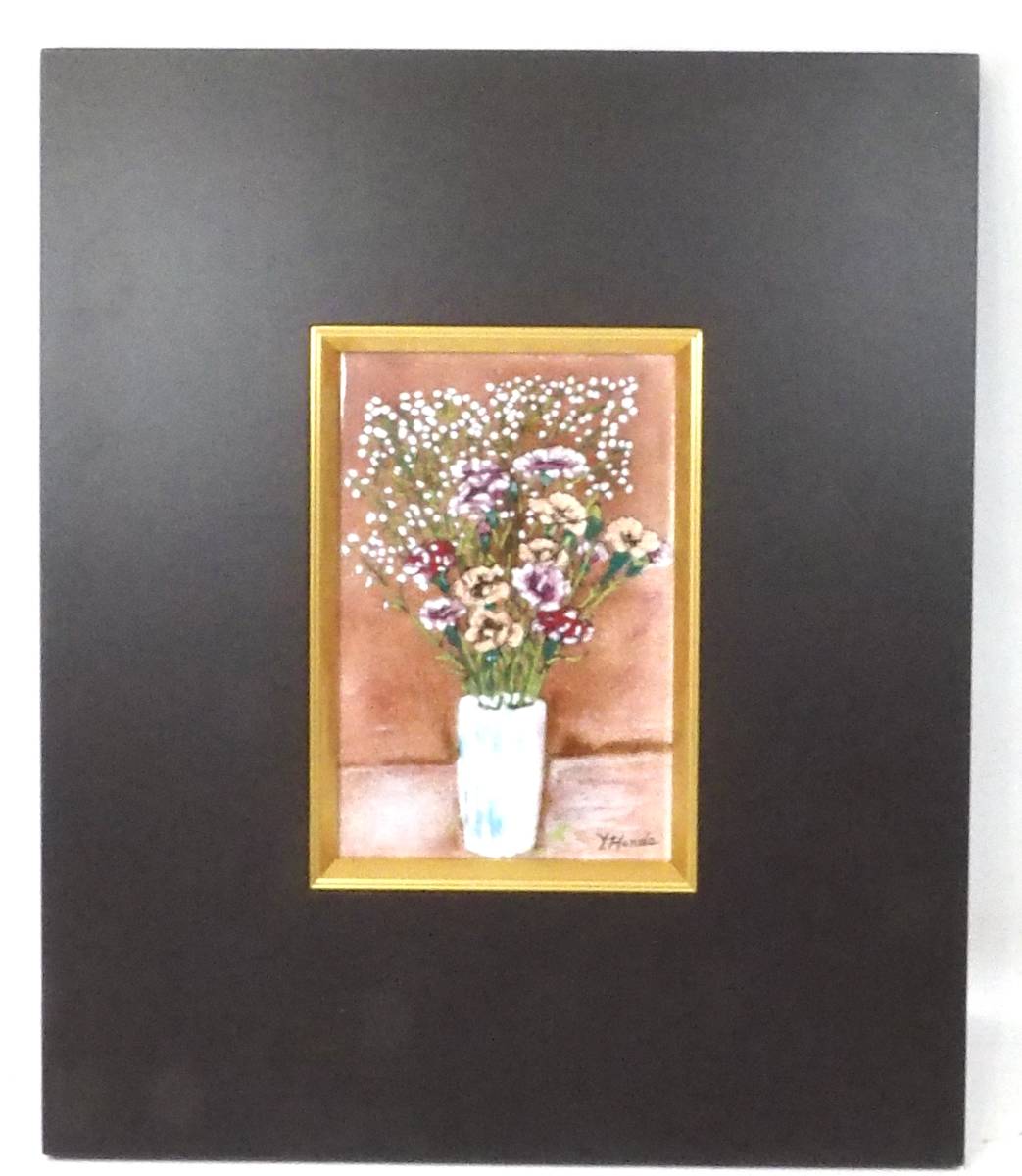 > 七宝本来の色合いと光沢が美しい逸品!ビンテージ 七宝焼アート 原画作者 本田好 ほんだよしみ「花」2000年代 静岡市美術家協会会員 FEM512