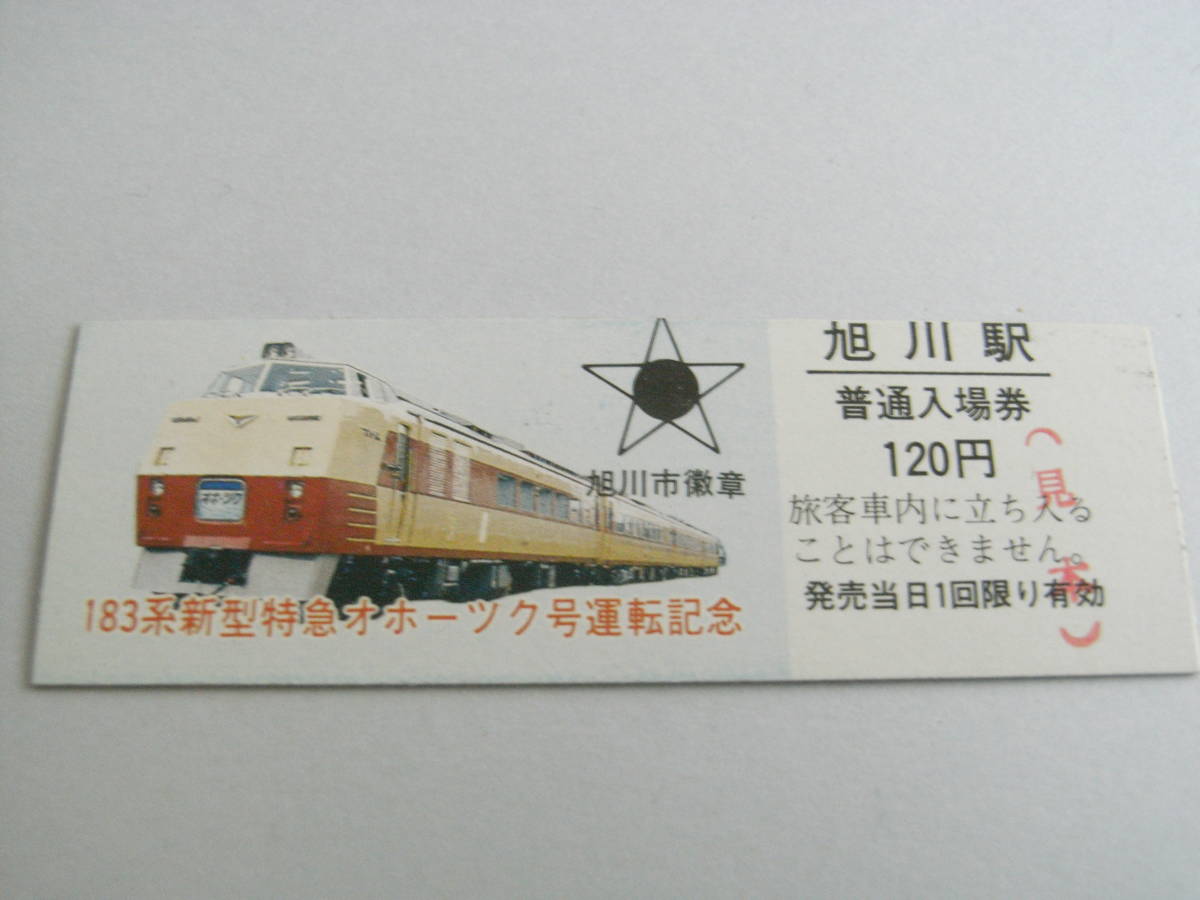- 函館本線 旭川駅 普通入場券 120円 旭川駅発行 183系新型特急オホーツク号運転記念 1982.10旭川鉄道管理局 国鉄