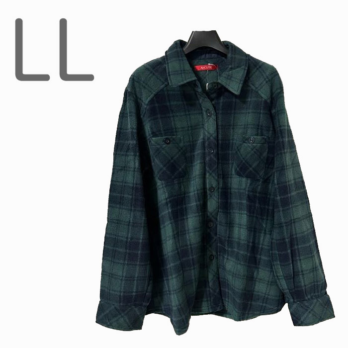 - ●新品/フリース/シャツ/LL/グリーン系/チェック/レディース●f10042