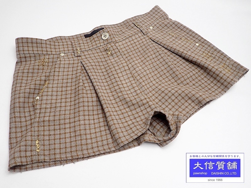 > PINKO ピンコ レディース チェック ショートパンツ 42 ポリエステル ウール グレーxブラウン 中古B+ 【送料無料】 A-6763