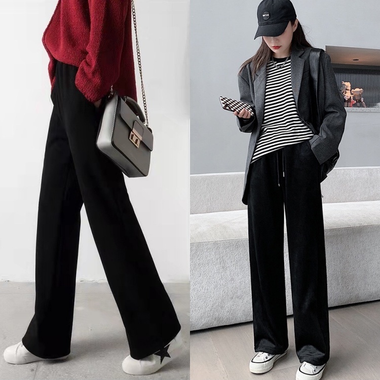 - 送料無料★即納 新品 極暖 裏起毛 防寒 リブパンツ ワイドパンツ 体型隠しにも★ブラック