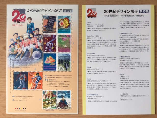 - 20世紀デザイン切手 第15集 1シート(10面) 解説文付き 切手 未使用 2000年