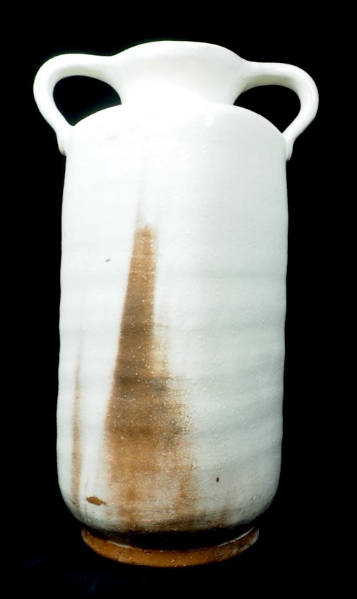 - 日本の陶芸家で、萩焼の第一人者!ビンテージ 萩焼 田原陶兵衛作 耳付花入れ 花器 化粧掛け 共箱無 陶印有 1980年代 KEN512