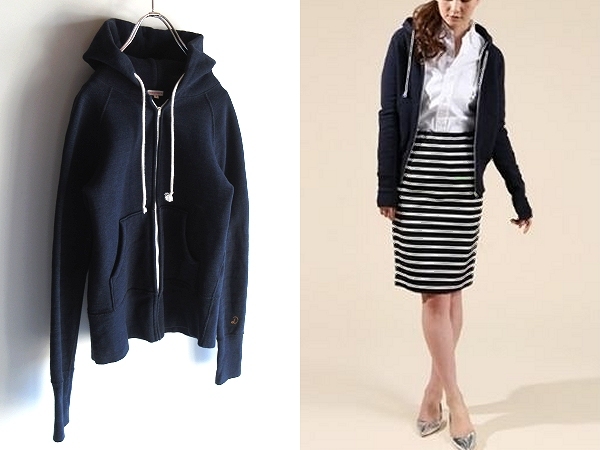 > DRESSTERIOR ドレステリア Dロゴ刺繍 厚手コットン 吊裏毛 ジップ スウェットパーカー 1 インディゴ ネイビー 日本製 田丸麻紀さん着用色違