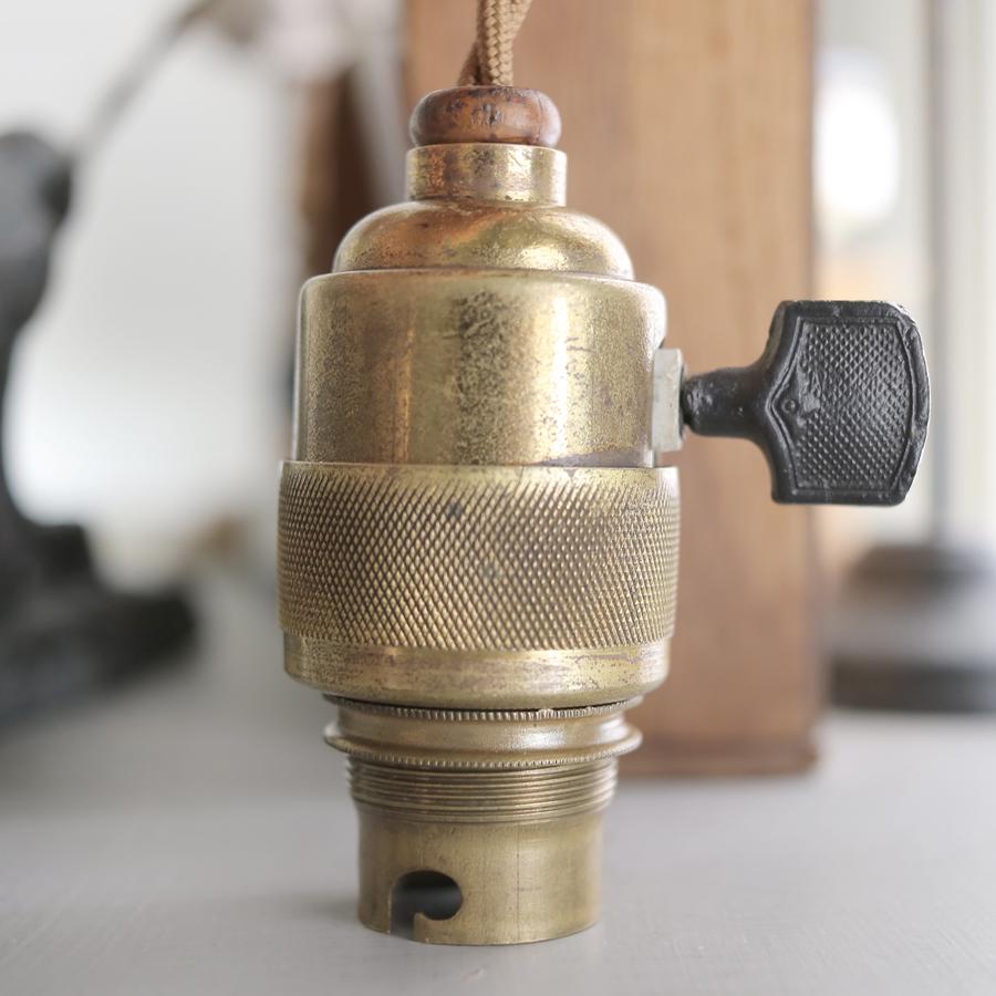 - 1910-50年代 スイッチ付 真鍮 吊り下げ ソケット ランプ フランス アンティーク D*/北欧 照明 磁器 イギリス カフェ 店舗 アトリエ ライト