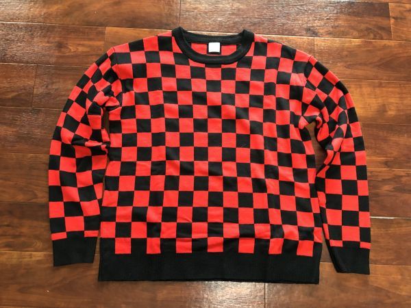 - BROWNY 赤黒 市松模様 チェッカー 長袖 Uネック セーター