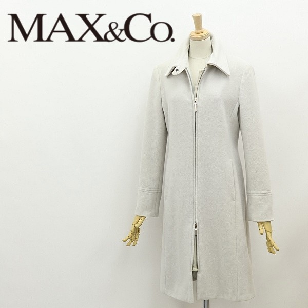 - ◆MAX&Co. マックスマーラ アンゴラ混 レザー使い ウール Wジップ コート ライトグレー 38