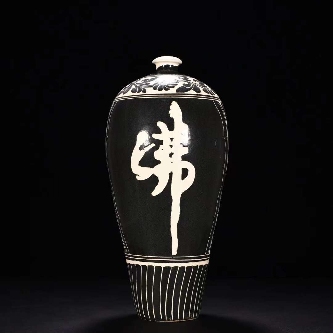 - 宋磁州窯 剔花 花卉文 佛梅瓶 唐物 陶磁器 中国美術 工芸品 HB838