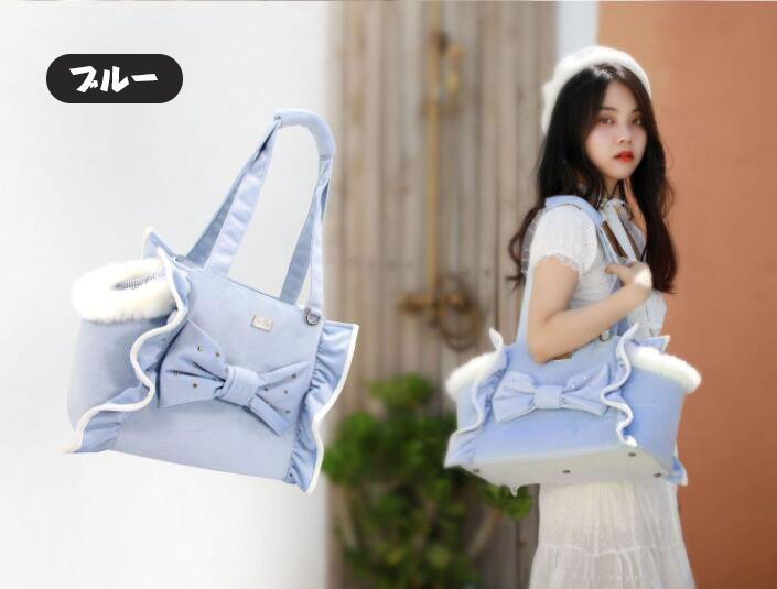 - ペットバッグ ペットキャリーバッグ 肩掛けできる 手提げバッグ 2way 猫 犬キャリーケース 通気性 飛び出し防止 出かけ便利 耐久性☆ブルー