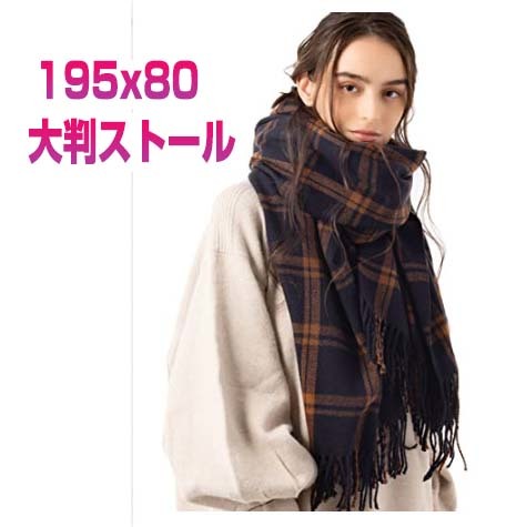 - 厚手 大判 ストール ショール マフラー ビスケットネイビー 男女兼用