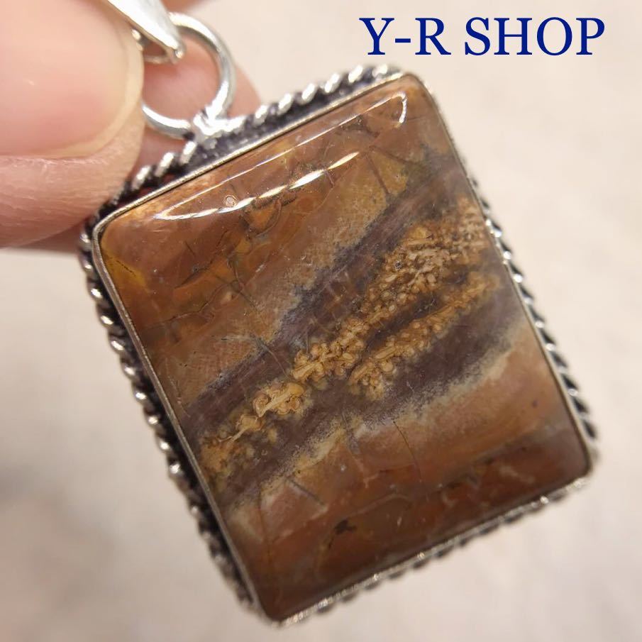 > 天然石★ブラウンジャスパーのアンティーク調ペンダントトップ ★レディースネックレスシルバー925刻印エスニックインド新品宝石