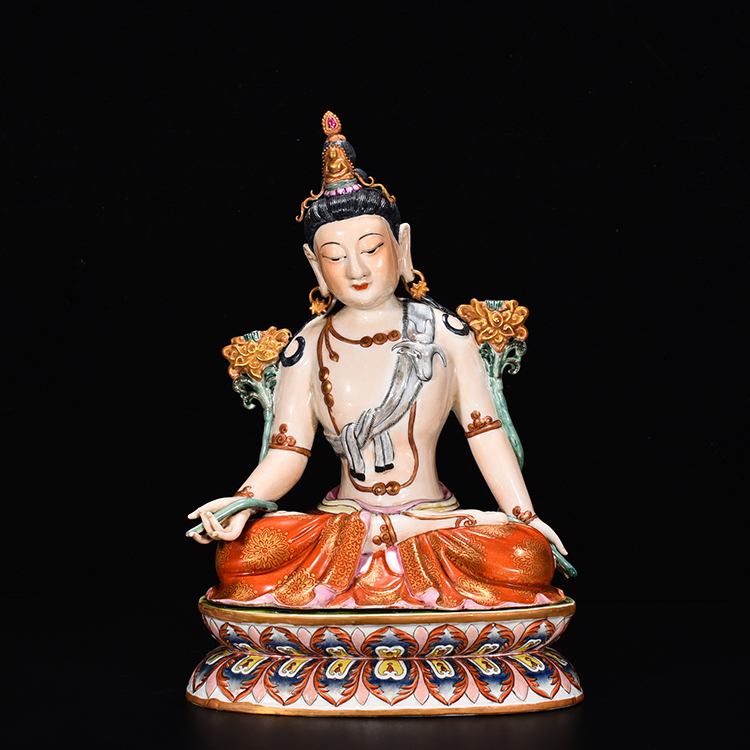 - 礬紅 描金 仏像 仏坐像 唐物 陶磁器 中国美術 工芸品 HB847