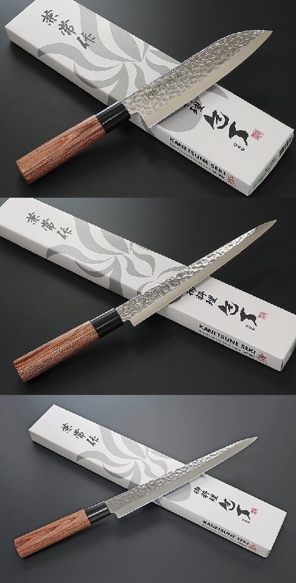 - 包丁 日本製 KC-952 三徳 165mm + KC-955 筋引 210mm + KC-959 筋引 240mmセット 兼常作 ステン1K6 槌目磨き