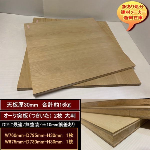 > オーク突板 楢 端材2点セット 約16kg 無塗装 760-795-30mm 675-730-30mm 大判サイズ 送料無料 訳あり処分 重い DIY