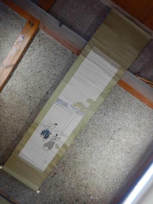 > 掛け軸012008 磯田長秋 長秋 小楠公 47x200cm 真作 直筆 本物 骨董 水墨画 絵画日本製 MADE IN JAPAN