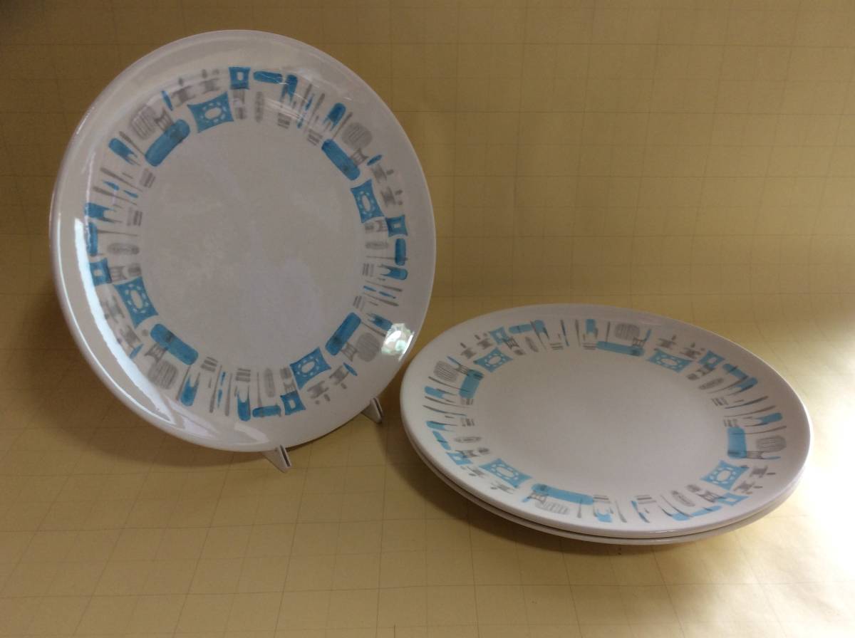 > 【Mid-Chinaware/R061/Royal China/BLUE HEAVEN】ローヤルチャイナ/ブルーヘブン/ディナープレート3枚/EX+/ミッドセンチュリー/アトミック