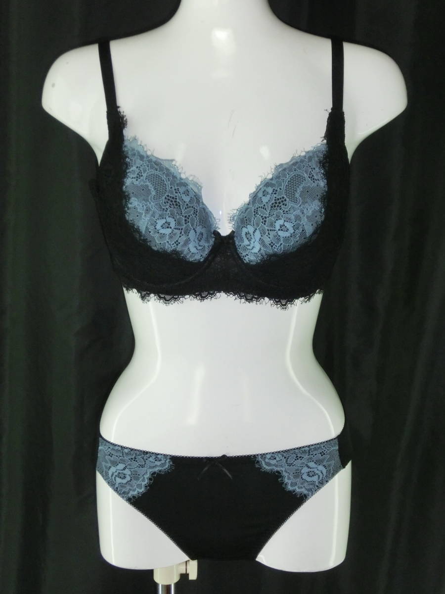 - ☆【D80 L】ブルーレース 編レースリフトアップブラジャー・ショーツセット《72ー1》