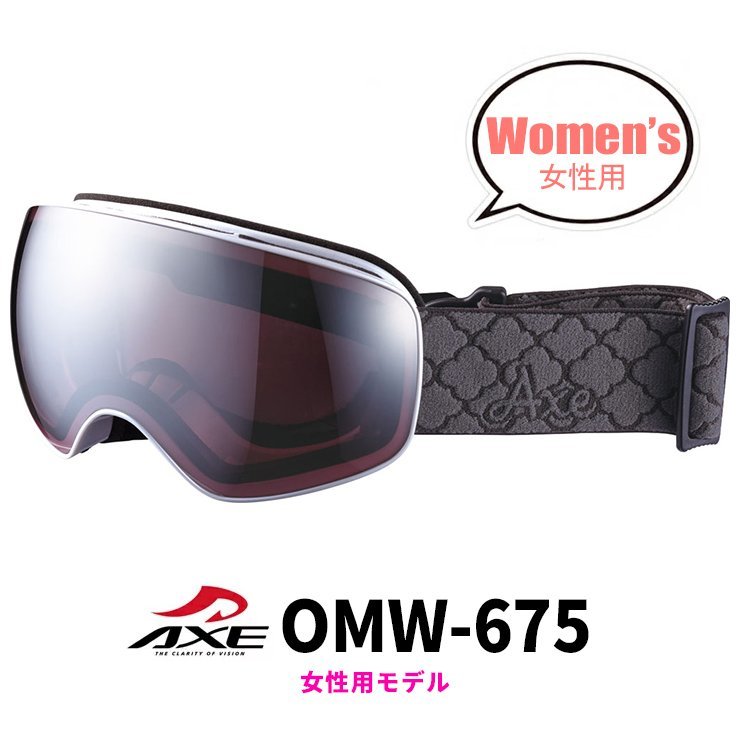 - 新品 レディース スノーゴーグル AXE omw-675 wt アックス 女性用 曇り止め 加工 ダブルレンズ スキー スノボー ミラーレンズ 眼鏡 対応