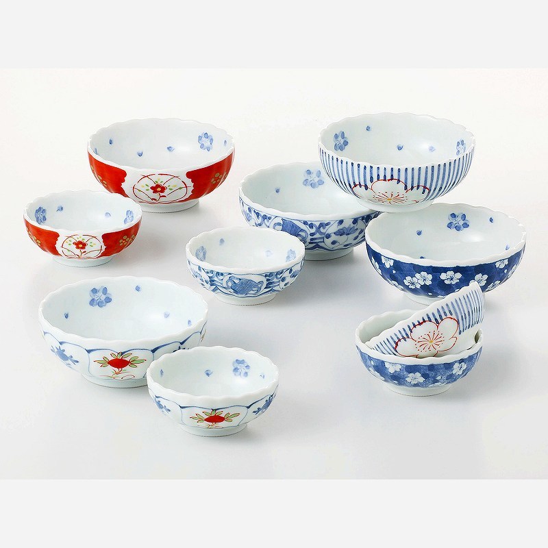- 西海陶器 染錦絵変り 菊型親子鉢揃 13358 波佐見焼