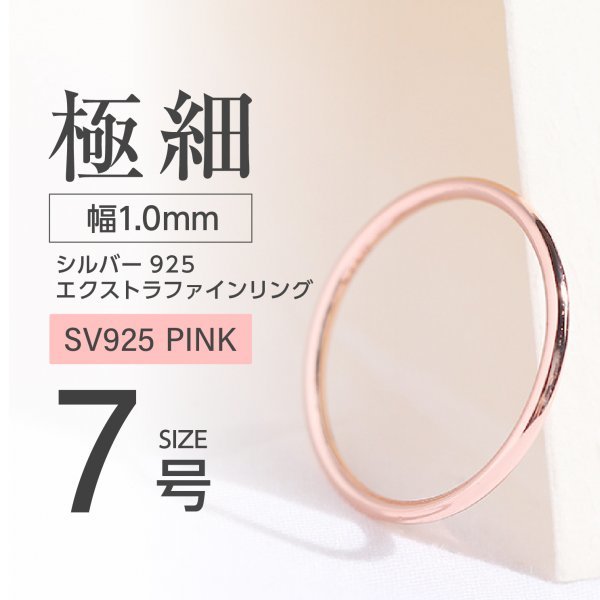 - J011-3 シルバー リング エクストラファイン S925 ピンクカラー 7号