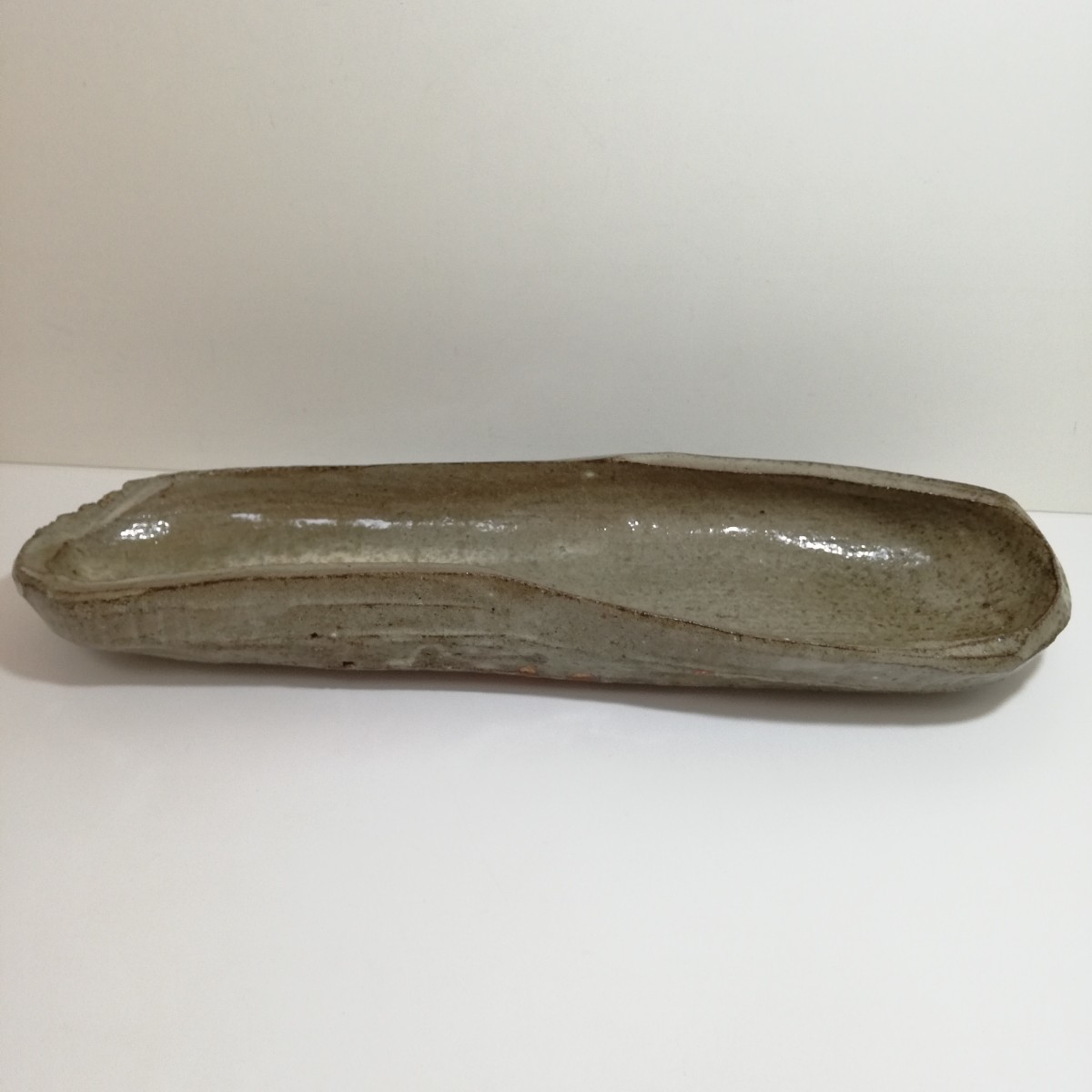 - 在銘 信楽焼 益子焼 糸瓜型 盛り皿 長皿 長さ40.5cm×幅11.5cm×高さ5.6cm 重さ1414g 未使用品 [ 和陶器 大皿 日本美術 旧家 ]